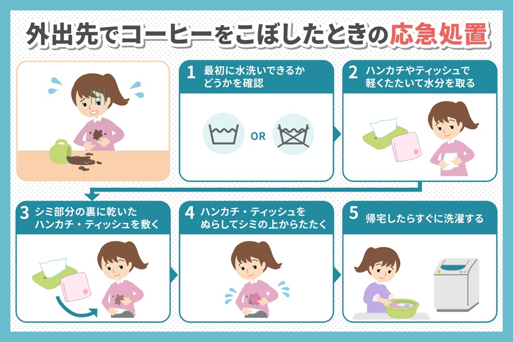 外出先で服にコーヒーのシミが付いたときの応急処置【5ステップ】
